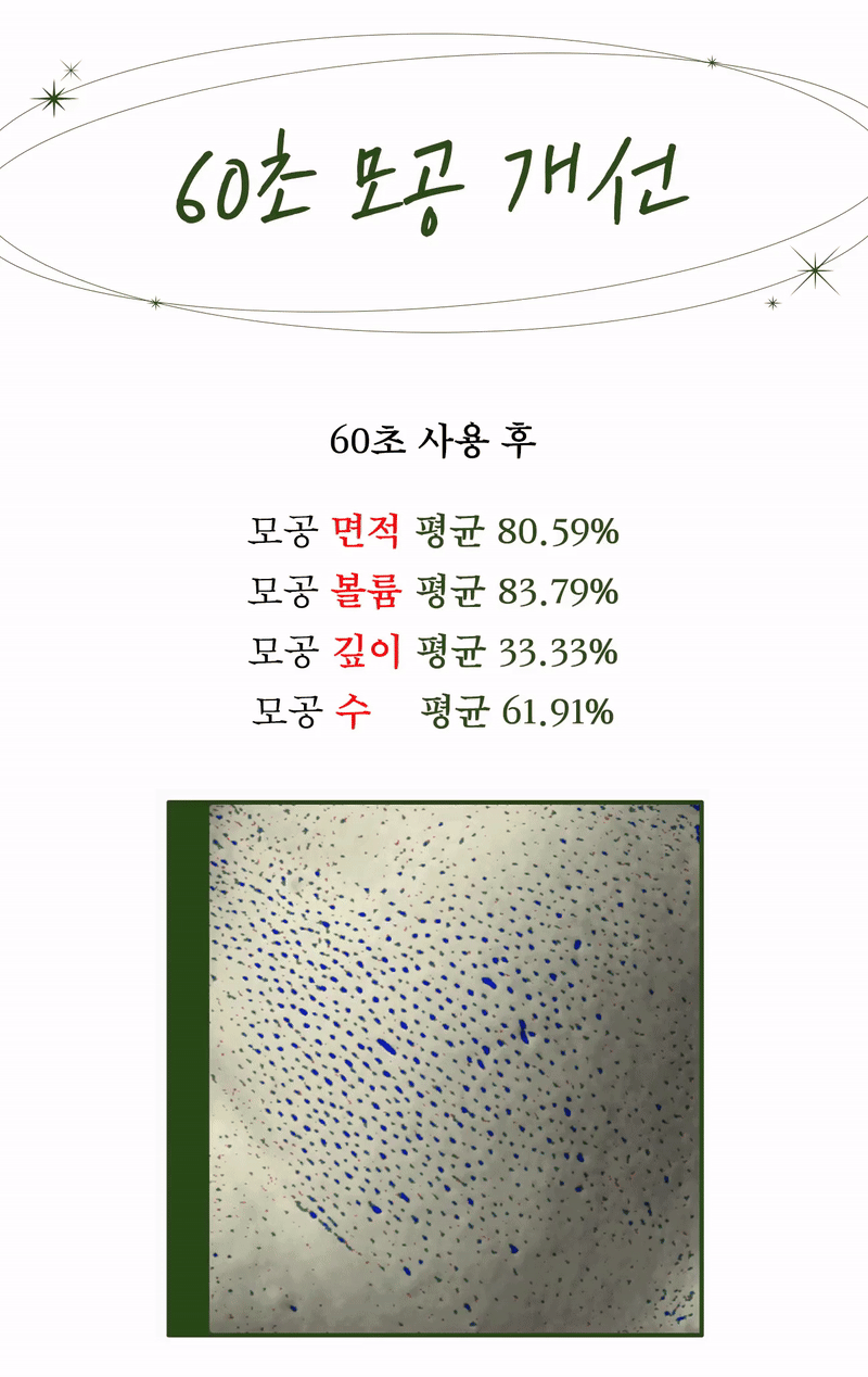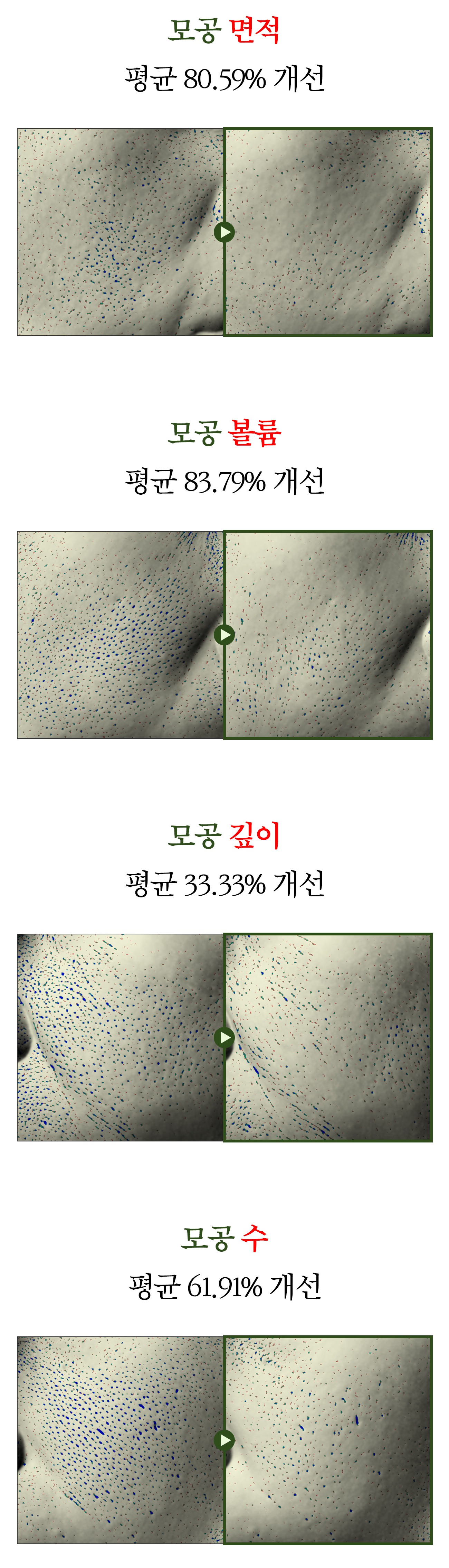 - 1회 사용 후 모공 깊이 33.33% 개선