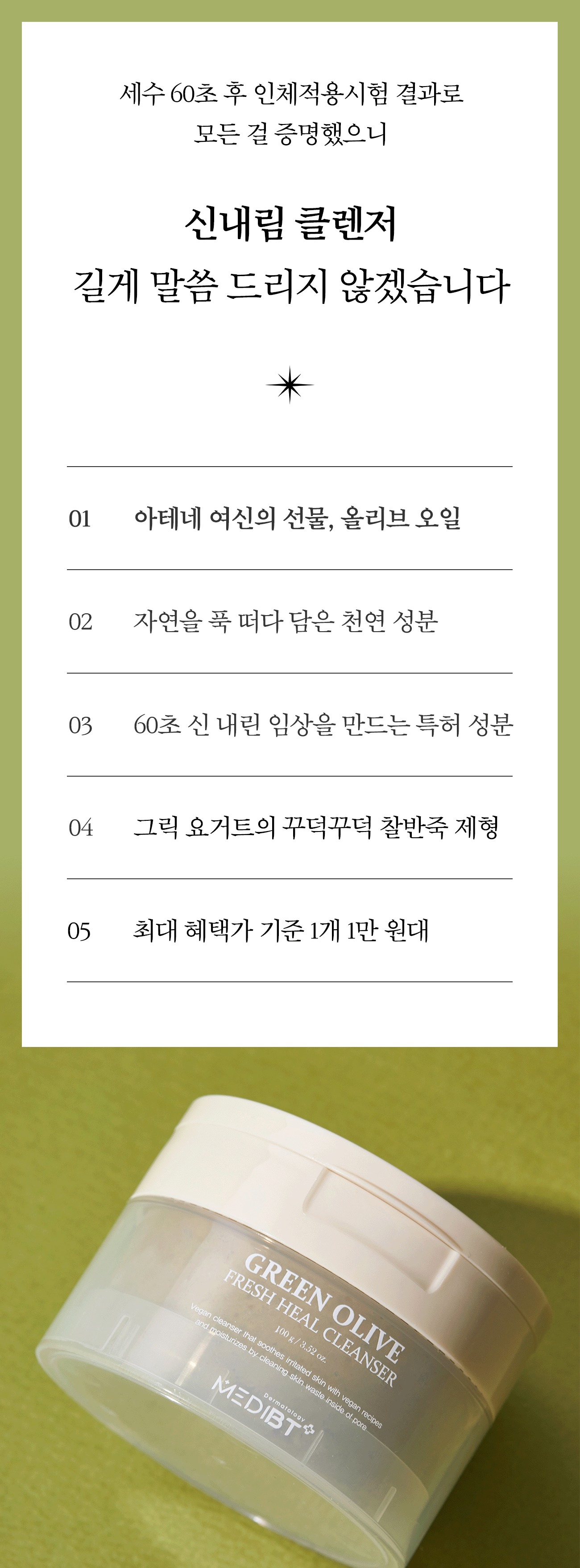 배송비 만으로 올리브 클렌저를(15g 체험키트) 경험해 보세요!