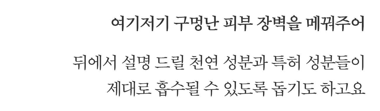 - 자연을 떠다 담은 자연 유래 성분 배합으로 꾸덕한 찰반죽 제형